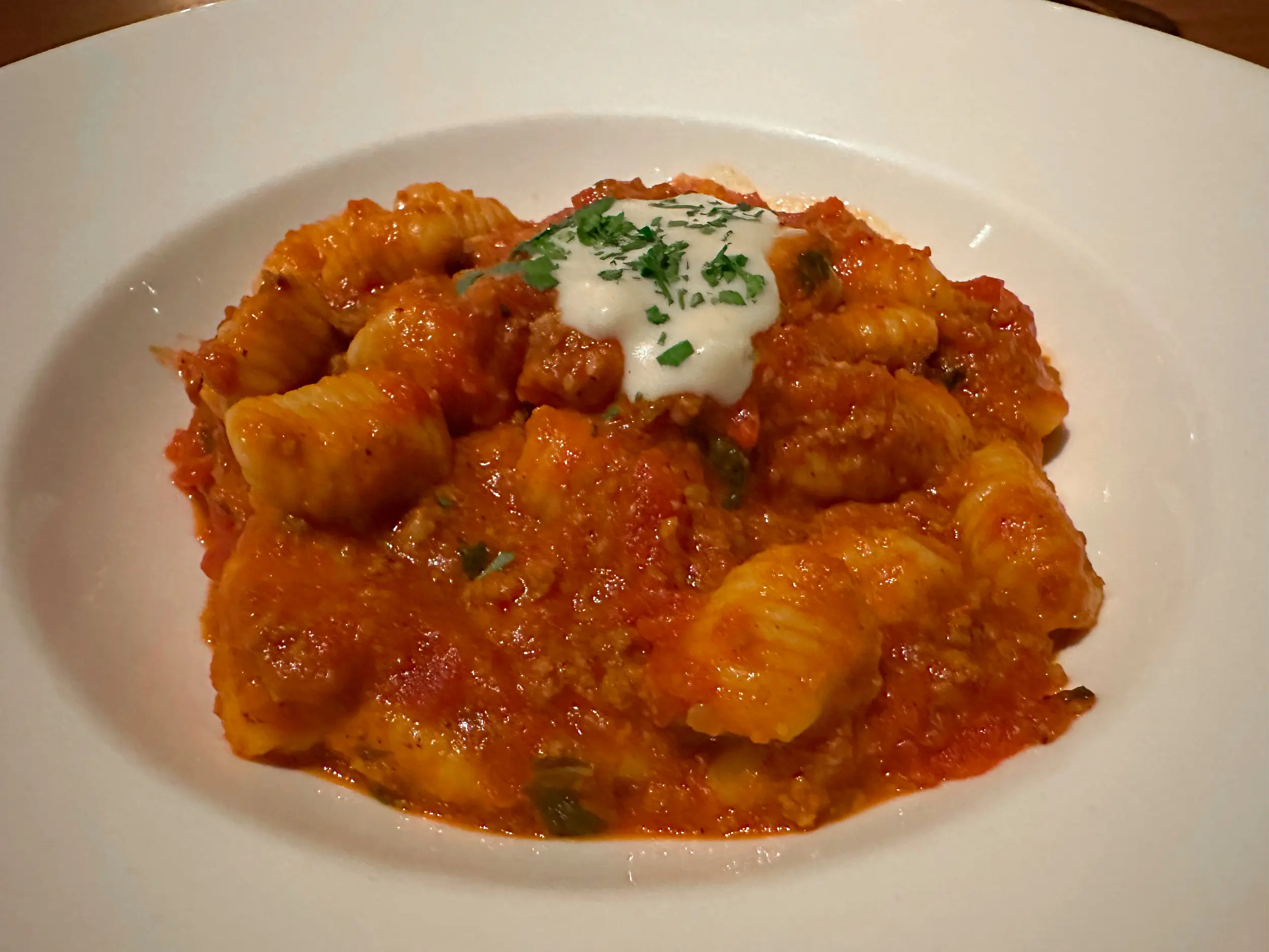 Then came the pastas. Goat cheese ravioli, soft and tangy, with a sauce that felt like it had been simmering just for us. And the gnocchi Bolognese—pillowy, rich, unapologetically comforting, the kind of dish you don’t talk over because it deserves your full attention.