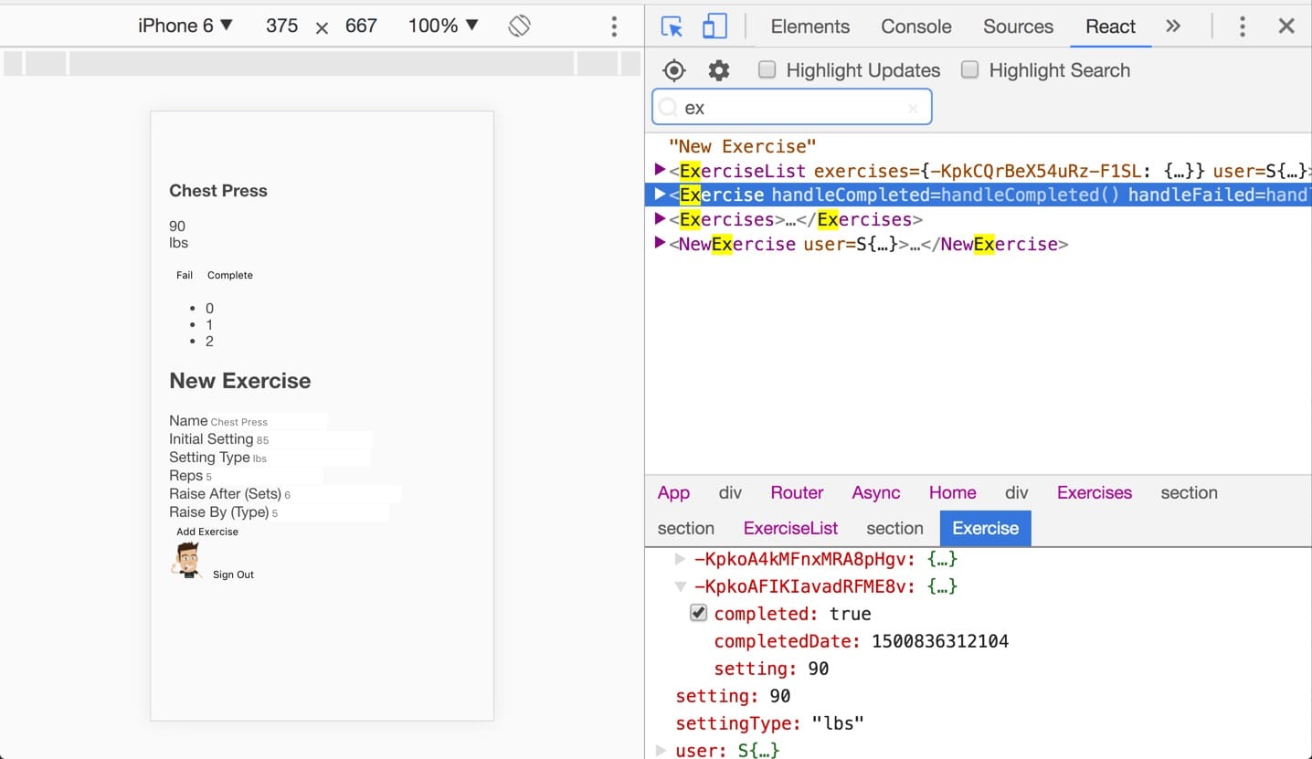 At this point, I realized ExercisesList wasn’t a great name for the primary container since it also contained SignIn. So, I swapped it for Exercises. commit